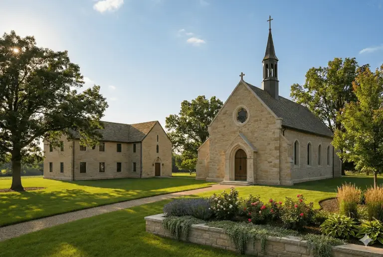The images on this page are concept illustrations, not finalized architectural plans. They are meant to communicate the spirit of what we hope to build: holy simplicity, a life centered on the Eucharist, and a place where prayer can flourish.